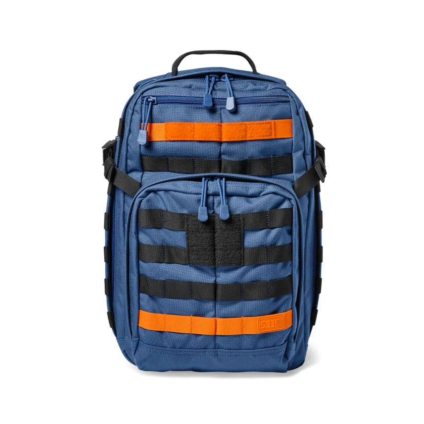 5.11s signature Center Line„ design Front lower pocket with internal slip and zippered pockets, admin org Built from high strength, water-repellant 1050D nylon Front top zippered pocket External front and side web MOLLE with 6x1 name tape and 3x3 loop Fleece lined eyewear/media pocket Padded laptop sleeve and dual mesh pockets in main compartment Hidden CCW compartment with loop panel Rear hydration compartment Contoured yoke shoulder strap system with web MOLLE Bottom panel web gear loops 5.11® Tier System